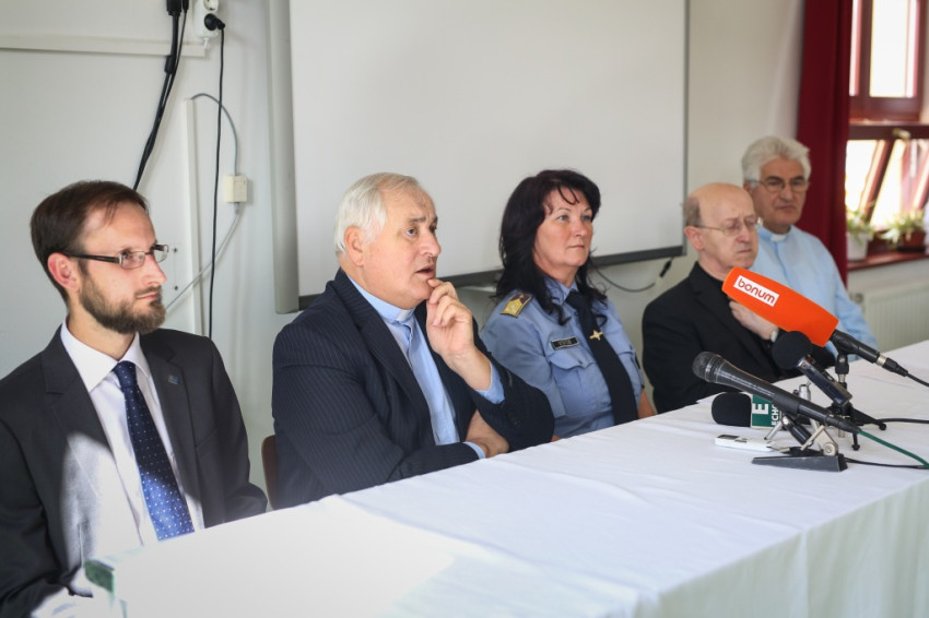 – Holnap előbb az egykori veszprémi várbörtönbe látogatunk el, amely ma már múzeum, aztán az újba, a korszerűbe. Belépünk a szürke falak közé, vagyis azt tesszük, ami napról napra, hétről hétre a börtönlelkészek legfőbb feladata. Az, hogy a remény és egy másik világ jeleiként legyenek jelen a rácsok mögött, hogy hidat verjenek a társadalom és a börtön között; az után is, hogy a család és a barátok gyakran sajnos már elmaradnak – mondja Bíró László tábori püspök Márfi érsek köszöntő szavait követően a sajtótájékoztatón. – Rendszeres találkozóink mintájára a börtönök dolgozói számára is szerveztünk már hasonló lelki programot. Ezt annak egyik fontos jeleként értékelem, hogy a börtönlelkészi szolgálat egyre inkább el- és befogadottá válik a büntetés-végrehajtás oldaláról.