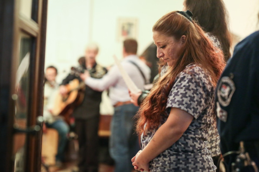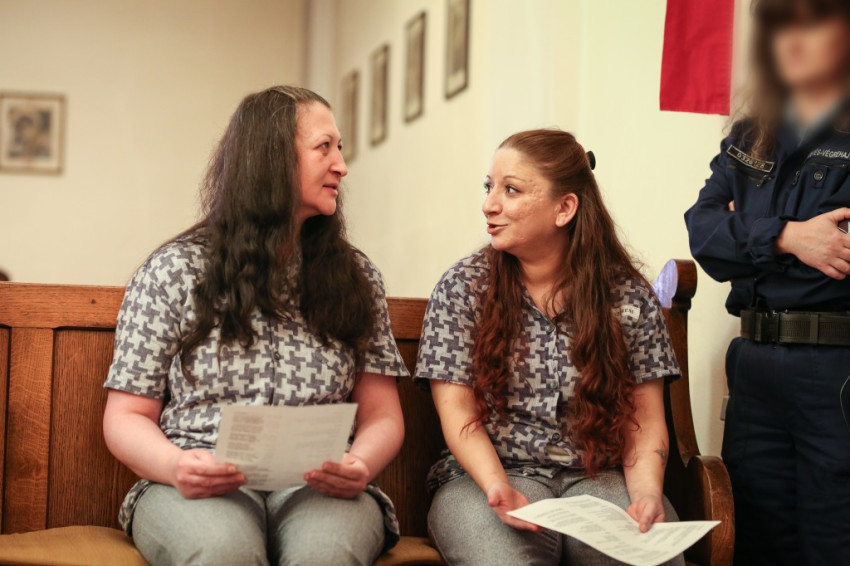 A kápolnában alig vagyunk, a többség újságíró és hozzátartozó. A sok kamera és minden intim pillanatba beóvatlankodó kezelőik zavaróan hatnak. Akárcsak az őrök jelenléte és a rabruhák. Szomorúan konstatálom, hogy a két, rabszállító autóval érkező fogvatartott hölgy életének még ezeket a szent pillanatait is ennyi méltatlan külső körülmény keseríti meg.