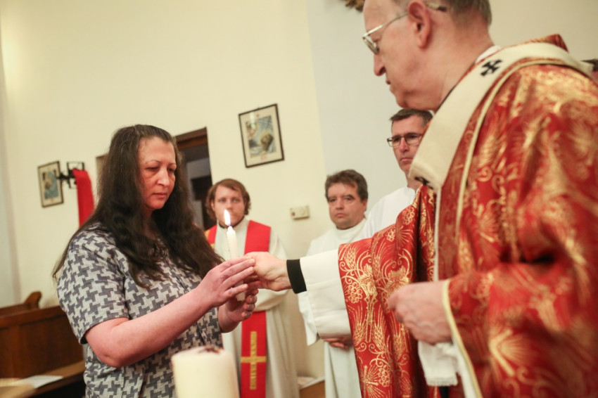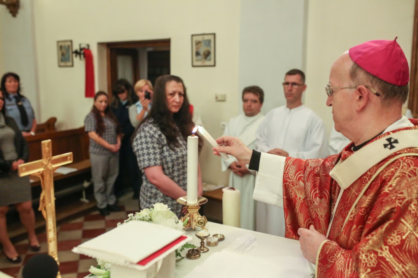 A mise után engedélyt kérünk, hogy beszélgethessünk a két fogvatartottal, akik perceken belül visszaindulnak a börtönbe. Tímea azt mondja, nagyon jól érzi most magát, és azt kéri, segítse a Jóisten. Úgy érzi, sok jót, boldogságot fog hozni az életébe a mai alkalom, a bérmálás.