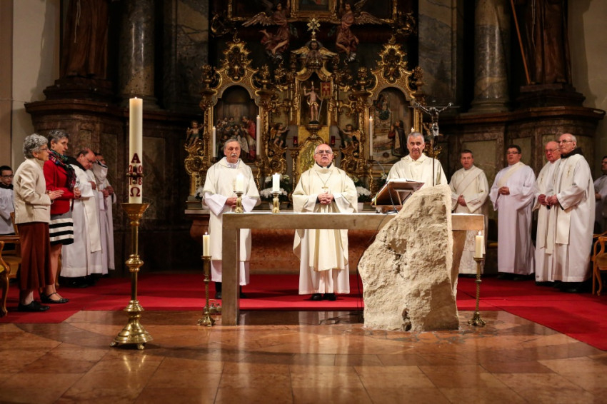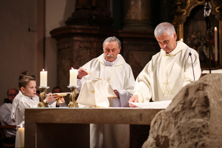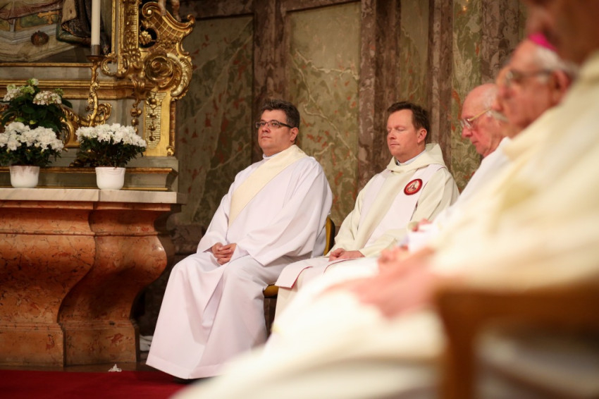 A könyörgések után az oltár előkészítésében ezen a misén csak a két ünnepelt diakónus vesz részt, szép jelképeként életük, elmúlt huszonöt évük szolgálatának. Vannak pillanatok, amikor a püspök mellett csak ők állnak kétoldalt, és ez akár a diakónusi hivatás melletti szép közös tanúságtételükként is értelmezhető.