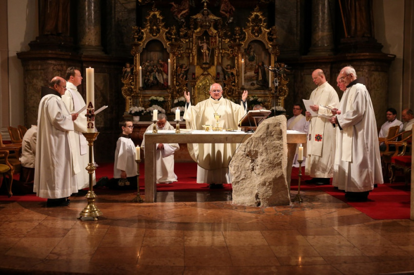 Ez a gondolat „létünk forrásvidékére”, a Szentháromság valóságába, szeretetközösségéhez vezet: ahhoz az Istenhez, aki egyszerre forrás, remény és cél számunkra, és aki ezt a mai napot is fenntartja, lehetővé tette számunkra. Nem érzésekről, tudományról, hanem a hitről van szó. Annak hitéről, hogy az életünk már el van rendezve, hogy biztonságban tudhatjuk magunkat, még akkor is, ha előbb-utóbb mindenki megéli a maga nagycsütörtökét-nagypéntekét. Jézus legyen számunkra az út, az igazság és az élet. Ő azért jött, hogy életünk legyen, és azt mondta a Lázár halála miatt szomorkodó Mártának: „Ha hiszel, meglátod Isten dicsőségét.” És ez ma, itt és most is így van, nekünk is szól.