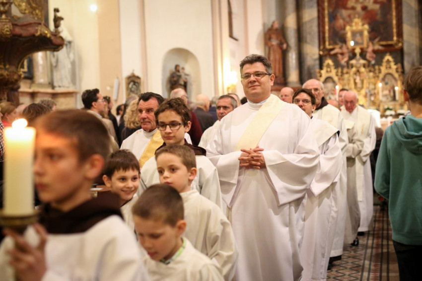 A misére bevonulók között érthető okból a szokásosnál több a diakónus, elöl több egész pici ministráns érkezik; a papok után, a menet végén pedig Nényei Gábor és Gorove László, a két ünnepelt, Varga László társaságában. A püspök első gondolatainak egyike az, hogy noha ma a két diakónusért és a hivatásukért mondunk hálát, mégsem őket ünnepeljük, hanem azt, aki meghívta és felszentelte őket.
