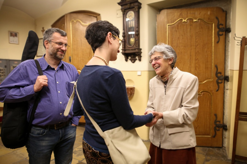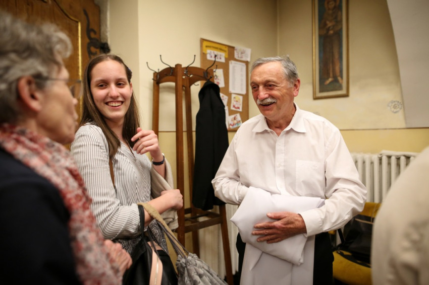 Felfigyelek a kórus által kifejezetten a mai jubileum tiszteletére énekelt szövegre. Később utánanézek, kitől származnak a megható sorok. Sík Sándor Te Deumát hallgatjuk, nagy jóérzéssel, örömmel. Abból táplálkozó örömmel, hogy ekkora kincseket gyűjthetünk életünk során: „Hogy boldoggá tett minden, ami szép / és ami rút, nem tett boldogtalanná, / hála legyen. // Hogy sohasem féltem a szeretettől / és szerethettem, akik nem szerettek, / hála legyen. // Hogy ember lehettem akkor is, / mikor az emberek nem akartak emberek lenni, / hála legyen.”