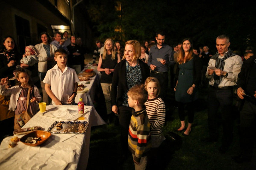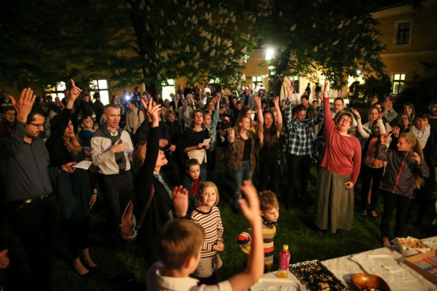 A misének vége, ám Gorove László visszatér, és a kertbe invitálja a jelenlevőket enni, beszélgetni, együtt örülni. Odakint sötét és erős gesztenyevirág-illat, meg rengeteg rohangáló, papírrepülőző, önfeledt gyerek. Az ünneplő sokaság éppen elszabadulna – ami annyit jelent, hogy mindenki mindenkivel beszélgetni kezd –, amikor Nényei Gábor rövid beszédbe kezd: felidézi diakónussá válásának történetét. „Szerelmes eset volt”, mondja, és az egyházzene meg a liturgia iránti szerelemre gyúlásáról, a szkólaalapításról, a kórus közösséggé formálásának folyamatáról számol be. Kirándulásokról, evező- és sítúrákról, a teológia elvégzéséről, jegyesoktatásról és cigány fiatalok felzárkóztató oktatásáról, amelyet a jezsuiták megbízásából vállalt. Majd hálát ad a rejtőzködő, csodálatos Úrnak a feleségével végzett közös szolgálat évtizedeiért.