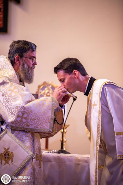 A diakónus valóban Istennek tetsző illatáldozatot mutat be, aki – mint az Emberfia a Jelenések könyve kezdő látomásában – gyertyatartók között jár-kel, és közvetít ég és föld között, oltár és a világot jelentő templomhajó bejárata között. András testvérünket erre a különleges szolgálatra hívja meg ma Istenünk” – emlékeztetett Orosz Atanáz.