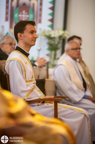 Prédikációjában nemcsak Keresztelő Szent Jánost, a Miskolci Egyházmegye védőszentjét, hanem a fő diakónus, fő vértanú, Szent István történetét is fontosnak tartotta megemlíteni Orosz Atanáz püspök. „Misztikus találkozásról olvashatunk az evangéliumban Zakariás pap és Gábriel arkangyal között. És ez a találkozás a templom illatoltáránál a tömjénezés közben valósult meg” – fogalmazott a főpásztor. „Még a pogány világ is fölismerte, hogy a fölfelé szálló füst illata valamilyen módon kifejezheti a bűnös ember sóvárgását arra, hogy Isten meghallgassa, hogy odafönt jóvá tegye, jóra irányítsa a dolgait. Ennek a sóvárgásnak volt a kifejezése a tömjénezés is. Azok a jelképek, amelyek ma a diakónusszentelésnél is előkerülnek, megerősítenek bennünket abban a tudatban, hogy