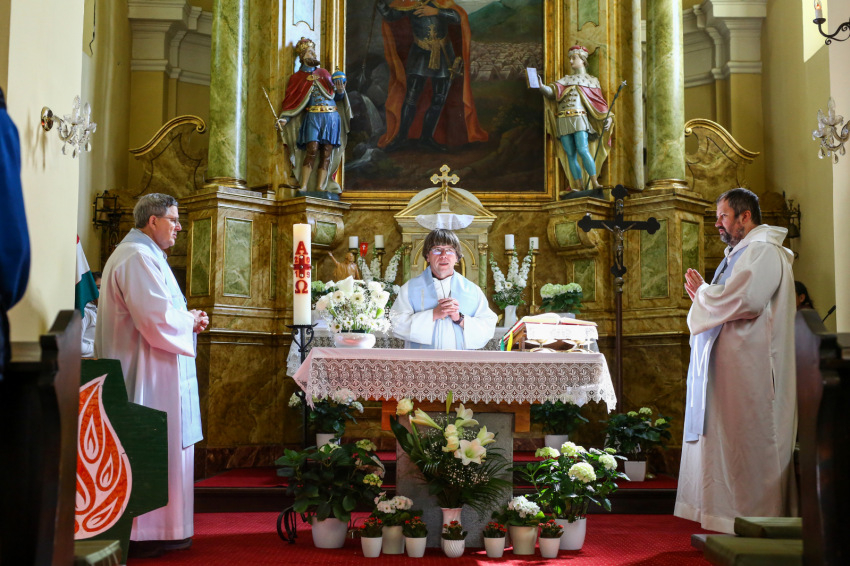 Tóth Bertalan süttői plébános prédikál. Csodákról, gyógyításokról hallottunk az imént, mondja, amelyeknek a hit és a bizalom volt a feltétele. A zarándoklaton az életszentségről és akadályairól elmélkedünk. A hit hiánya, gyengesége is ezek közé tartozik. Meg az, ha feladjuk a küzdelmet a bűneink ellen. Ne aggasszon, ha mindig visszatérnek, csak az a lényeg, hogy ne barátkozzunk meg velük. A környezetünk visszahúzó ereje is nehézséget jelenthet. Lehet, hogy még a családunk is, ha túlbuzgónak tart. Salkaházi Sára – akinek ma van az emléknapja – arra tanít a példájával, hogy az életszentség útja hosszú és küzdelmes. A sikerhez nagyban hozzájárulhat, ha olyan közösséghez tartozunk, amelyben támogatjuk egymást a jóban.