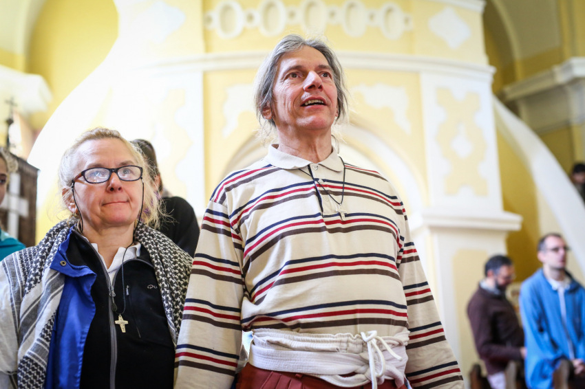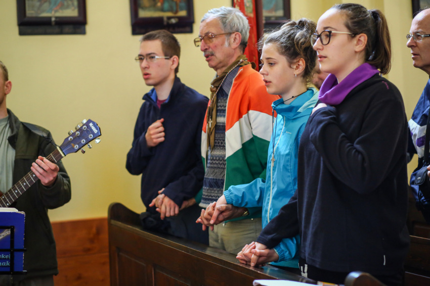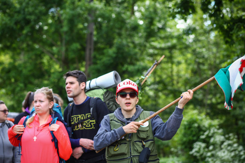 A zászlókkal, rózsafüzért imádkozva távolodó csoportot sok kiránduló megbámulja. „Katolikusok, és egyházi szabályaik szerint viselkednek” – jegyzi meg egy úr nagy szakértelemmel.