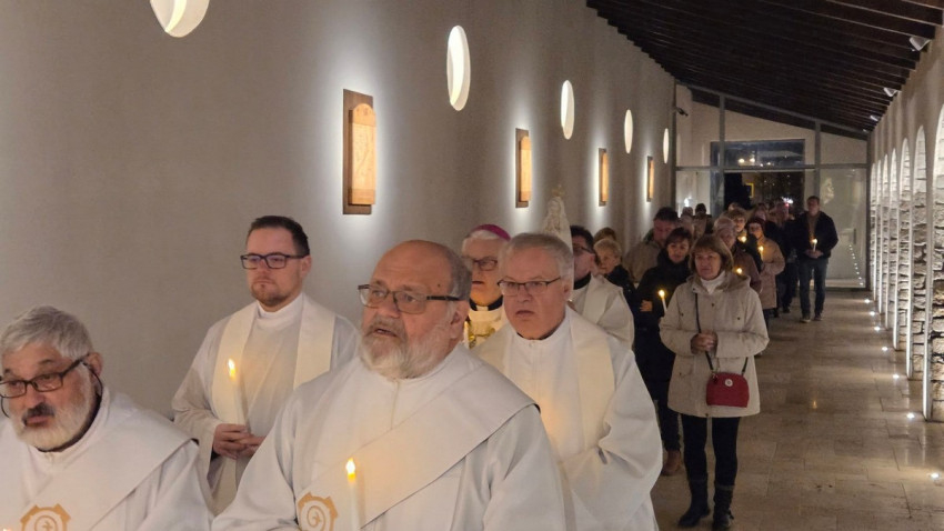 A kegyhelyen nagyon sokan összegyűltek, hogy főpásztorukkal együtt imádkozva adjanak hálát szolgálatáért, és kérjék a Segítő Szűzanya szeretetét és oltalmát.