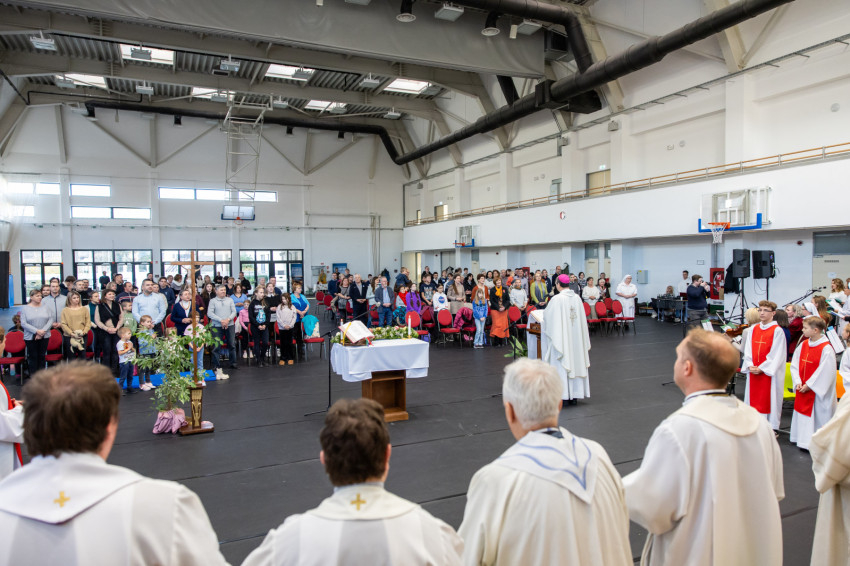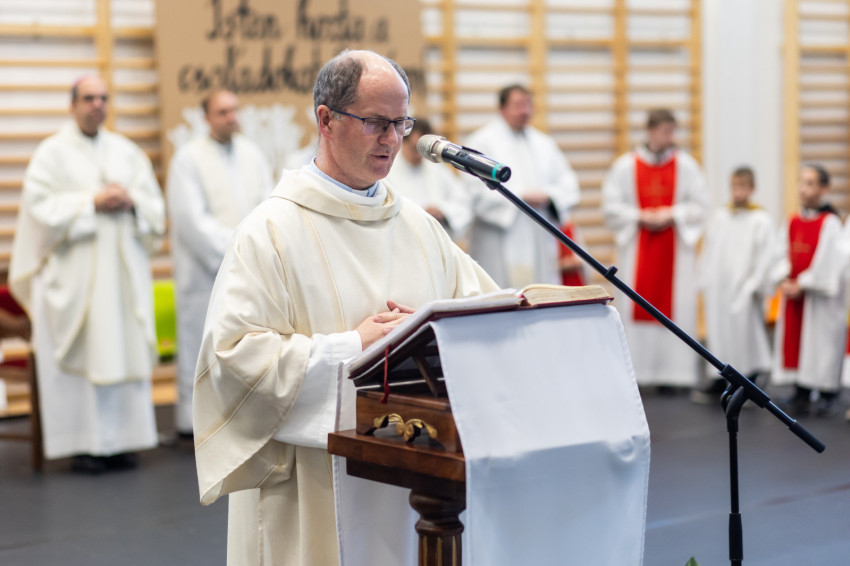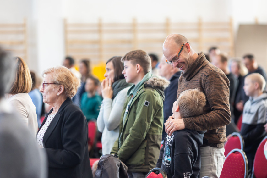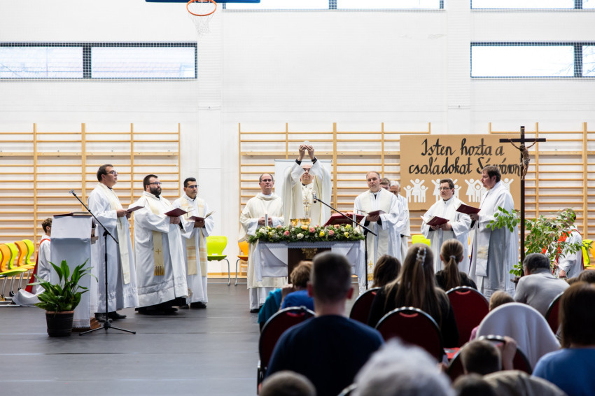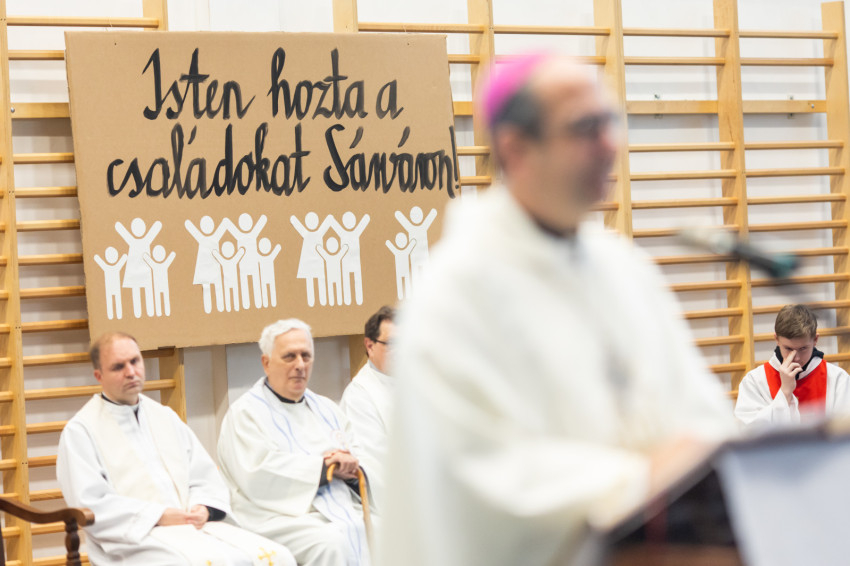A püspök köszöntőjében elmondta, családjaink az Egyházunk nagy kincse, hiszen sok istenkereső embernek a család és a házasság szentségének a megbecsülése az első, ami megtetszik. „Jel vagytok a világ számára, Isten szeretetének a jele. Imádkozzunk, hogy a szívünk királya Jézus legyen, ő legyen a gyerekek, a szülők szívének királya. Ma délelőtt a kiengesztelődésről hallottatok, a megbocsátás forrása ő, aki odaadta az életét. Nem is annyira mi bocsátunk meg, inkább ő az, aki irgalmaz.