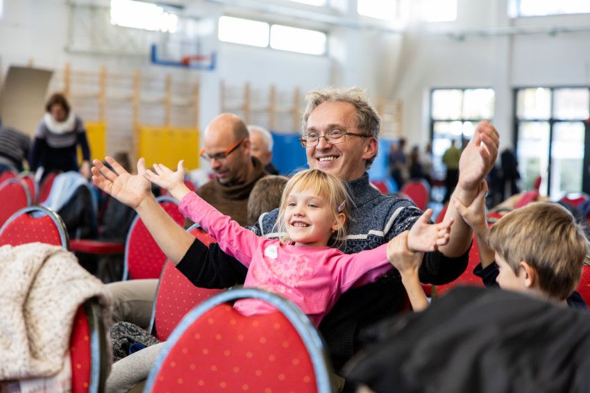 A reggeli imádság előtt, melyen, mint egész nap, a sárvári katolikus zenekar és énekkar végzett szolgálatot, köszöntőt mondott a sárvári polgármester, Kondora István, a helyi plébános, Várhelyi Tamás és az egyházmegye családreferense, Gyöngyös Balázs. A nap házigazdái Eszes Adrienn és Haller Ferenc voltak, a szervezésben és a lebonyolításban pedig részt vállaltak az annunciáta nővérek is. A gyerekek a reggeli ima után külön foglalkozásokon vettek részt korcsoportonként az iskola napfényes, szépen berendezett termeiben. A tornacsarnok végében kézzel készített ikonokat, gyertyákat, könyveket lehetett vásárolni.