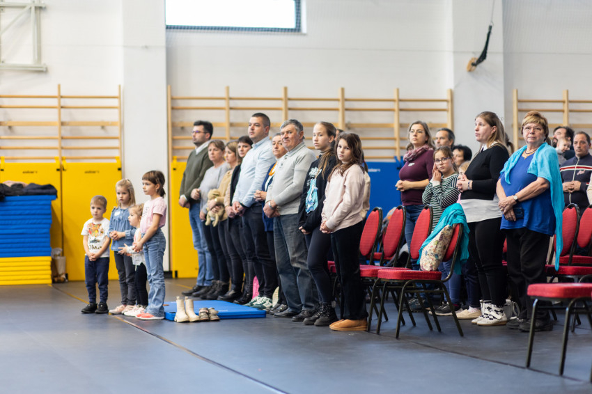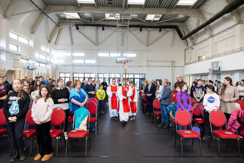 „Király vagy” – szólt a Krisztus Király-napi dicsőítő ének, melyre a szombathelyi egyházmegye papjai és Székely János megyéspüspök bevonult az iskola tornacsarnokába.