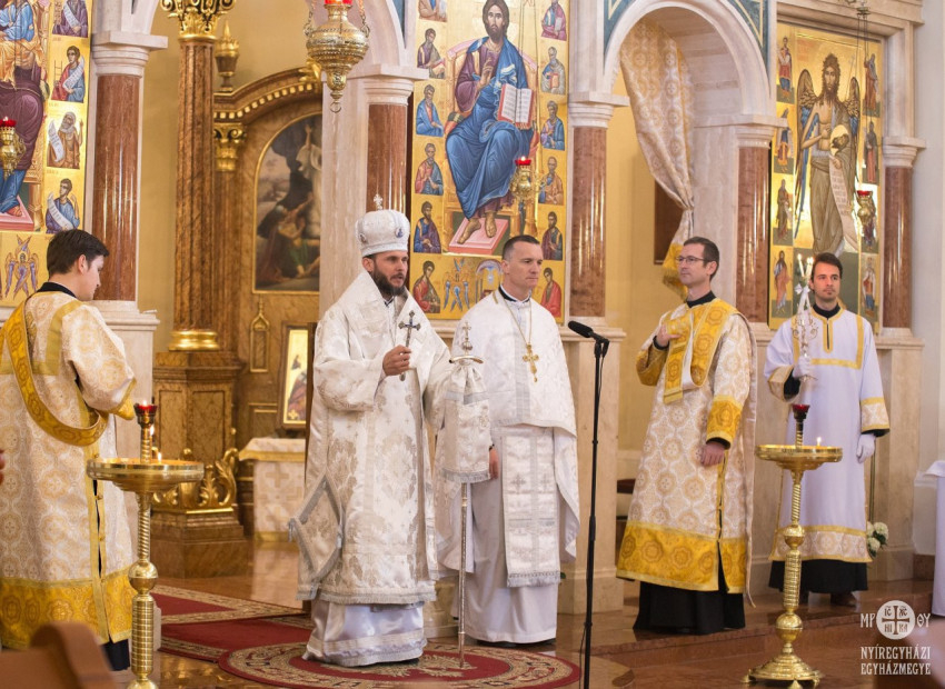 Szocska A. Ábel megyéspüspök Papp Tibor főhelynök koncelebrálásval mutatott be Szent Liturgiát húsvétvasárnap.