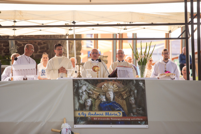 A szentmise elején Nyéky Kálmán plébános és Kintler Vince, az egyházközségi képviselő-testület vezetője köszöntötte a főpásztort és a zarándokokat – köztük a Székesfehérvárról érkezetteket, ahonnan már kétszáz éve minden év szeptemberének első vasárnapján ellátogatnak Andocsra, valamint a tabi karitászcsoportot, akik immáron huszadik éve zarándokolnak el a kegyhelyre.