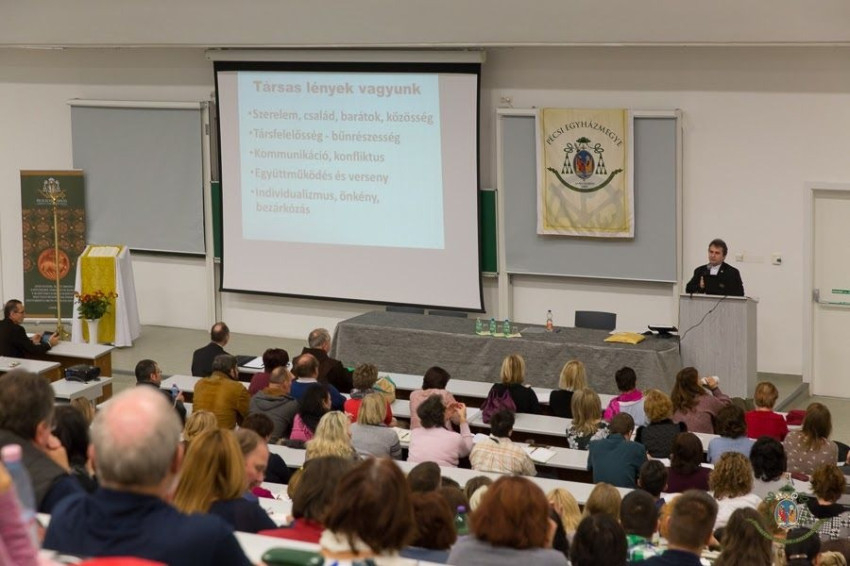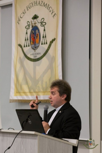 Udvardy György pécsi megyéspüspök végül röviden összegezte a két előadó üzenetét, rendszerbe foglalta, a kapcsolódási pontokat kiemelte, ezáltal mélyítette a megértést.