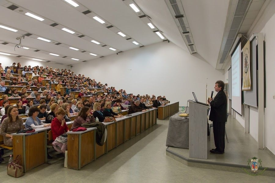 Az első előadó, Papp Miklós morálteológus vezetésével a keresztény emberkép fogalmát járhatták körbe a pedagógusok. Az előadó hangsúlyozta: minden ember szeretetre született. A keresztény pedagógus csak akkor tudja eredményesen végezni missziós tevékenységét, ha Istennel, önmagával és embertársaival is rendben van a kapcsolata, azaz a szeretete mindhárom irányban kiegyensúlyozott. A teológus előadásában a középpontba helyezte a gyermeket, aki nemcsak szülei, hanem pedagógusai számára is kincs, csoda, Isten ajándéka. Az előadás életvezetési tanácsai, gyermekképe mellett azt a Jelenits Istvántól kölcsönzött gondolatot is magukkal vihették a résztvevők, miszerint a pedagógusokra jellemző az a makacs hit, hogy „érdemes a borsót a falra hányni” – azaz a tanítványokban az elültetett mag szárba szökken, termést hoz, s a gyümölcs beérik.