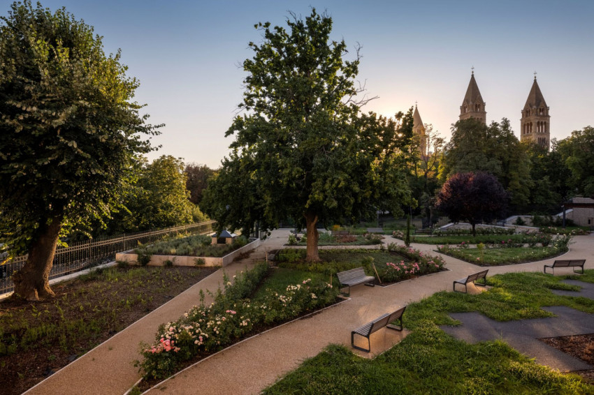 A Szent Péter és Szent Pál-székesegyház közelségében, a Pécsi Egyházmegyei Könyvtár szomszédságában található Rózsakert területének múltja a késő római korra tekint vissza, ám a pécsi lakosok számára inkább a belvárosban 1954 és 2010 között működő, igencsak népszerű zenés-táncos nyári vendéglátó egységet, a Rózsakert Vendéglőt idézi fel.