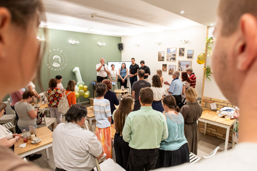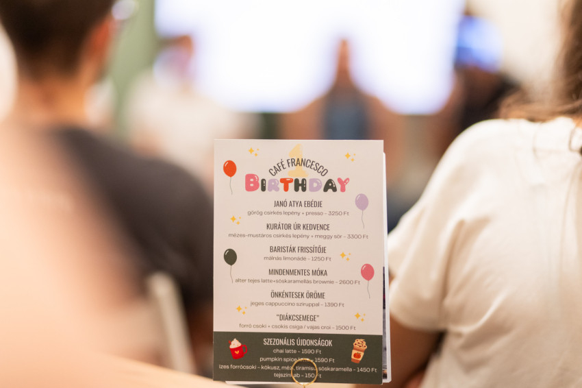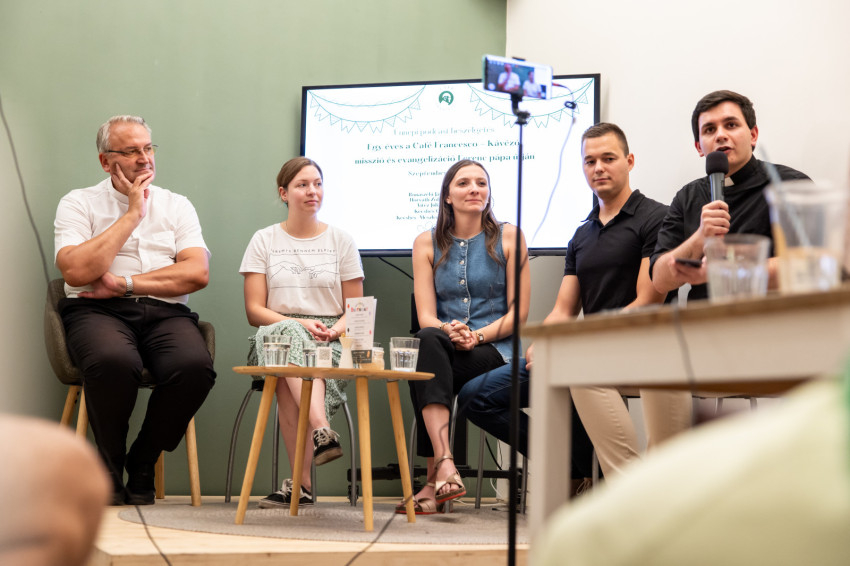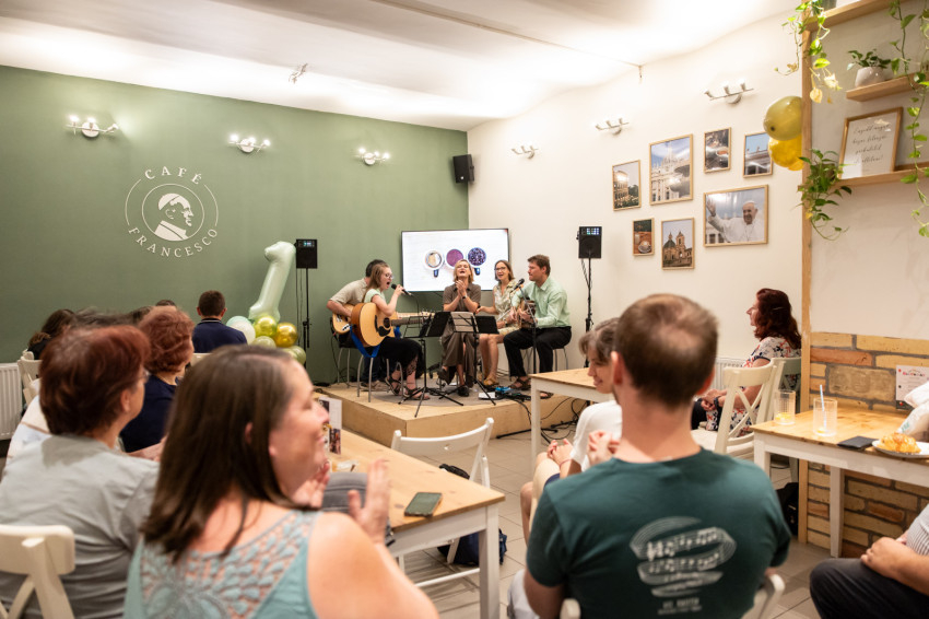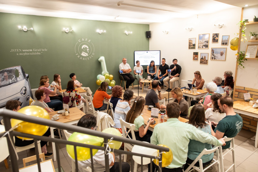 A népszerű keresztény kávézó esti programja ezúttal születésnapi podcastbeszélgetés volt, amelyen a Café Francesco alapítói, Rónaszéki János, a Budapest-Újlipótvárosi Árpád-házi Szent Margit Plébánia káplánja és Horváth Zoltán, a budapest-terézvárosi Avilai Nagy Szent Teréz-templom esperes-plébánosa; Vitéz Júlia üzletvezető (aki öt hónappal ezelőtt Lőw Juliannától vette át a vezetést), Kecskés Csaba, a nonprofit kávézót létrehozó-üzemeltető Franciscus Alapítvány kurátora és Kecskés-Meszleny Zsófia, a kávézó és a helyszíni programok médiamenedzsere, online felelőse vett részt.