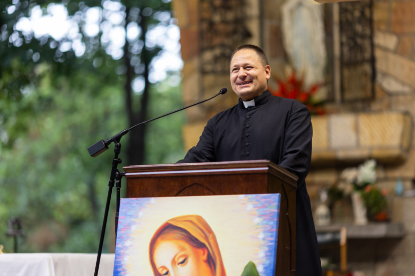 Kovács Zoltán megvilágította: a Szűzanya ma már a mennyből, megdicsőült emberi mivoltában segít nekünk, hogy Istenhez közelebb vigyen bennünket. Anyai szívét a mennyország boldogsága nem teszi érzéketlenné, sőt ott is „van szeme” a „mai kánai menyegzők” problémáira, hogy anyaként közbenjárjon értünk; „van szíve”, hogy megtámogassa imáinkat a sajátjával. XVI. Benedek pápa mondta egyszer: „A mennyországnak szíve van.”