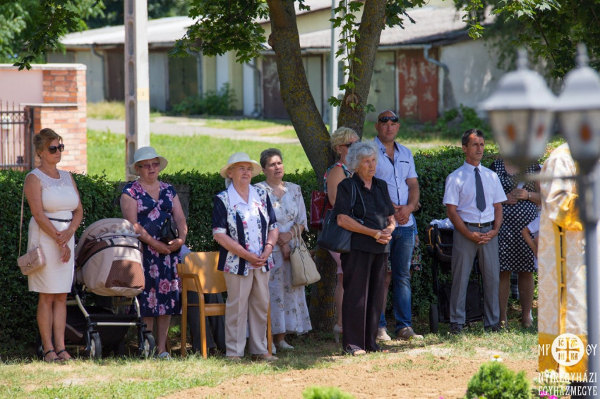 A kezdetekről szólva Takács Tibor, az egyházközség gondnoka arról a hat családról beszélt, akik elsőként kezdték el itt gyakorolni görögkatolikus hitüket a 20. század első felében. Zakorné Szinku Jolán néni már nem érhette meg (múlt héten temették el), hogy a templom kertjében is keresztet állítottak, mint egykor az ő kertjében. E kereszt és a mellette álló harangláb körül gyűlt össze hétről hétre a maroknyi hívő, hogy Jolán néni kertjéből indulva együtt átmenjenek a határ túloldalára, Csapra, a Szent Liturgiára. Az 1960-as években szobát béreltek, majd a római katolikus kápolnában dicsérték az Istent a görögkatolikusok. De a szervezőlelkészség gyarapodott, így megépítették a templomot. A telken – az egykori tiszai holtág helyén – egy fahánccsal feltöltött vályogvető gödör volt korábban. Különös adalék a templom építésének történetében, hogy még a Magyarországról kivonuló szovjet katonák is segítettek a faháncs kiszedésében.