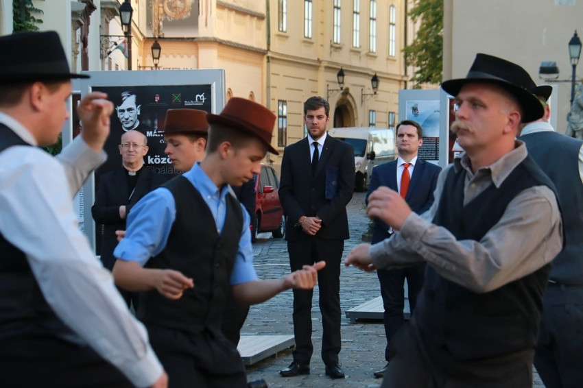 Meg kell tanulnunk egymásért munkát vállalni és együtt dolgozni az élet minden területén – idézte Márton Áron első körlevelét Szilágyi Péter nemzetpolitikáért felelős helyettes államtitkár. Elmondta, A közösség szolgálatában című kiállítás célja a tanúságtévő püspök életét megismertetni minél több emberrel, mivel életpéldája minden időben vezetni tud minket napi küzdelmeinkben.