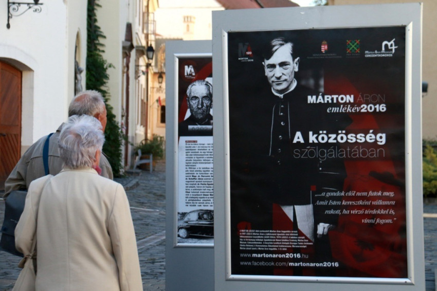 Porga Gyula, Veszprém polgármestere elmondta, Márton Áron élete egy pásztor tanúságtétele, aki népével maradt a szörnyű megpróbáltatásokban, abban a korban, ami próbára tette az életeket és jellemeket. A városvezető hangsúlyozta: a püspök, bár elítélte a világháborúk utáni békediktátumok borzalmát, nem szított lázadást, helyette békére intett; nem kötött kompromisszumot, szelíd, de határozott szavát minden kisemmizett, jogfosztott érdekében felemelte.
