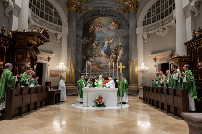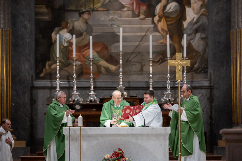 A szerda reggeli szentmisét latin nyelven Erdő Péterrel együtt mutatta be Székely János, a Magyar Katolikus Püspöki Konferencia (MKPK) elnöke; Böcskei László nagyváradi megyéspüspök, a Romániai Katolikus Püspöki Konferencia (CER) elnöke; Udvardy György veszprémi érsek, az MKPK elnökhelyettese; Aurel Percă bukaresti érsek; Felföldi László pécsi megyéspüspök, Marton Zsolt váci megyéspüspök és Varga Lajos váci segédpüspök; Németh Gábor, az MKPK titkára és Francisc Ungureanu, a CER titkára.