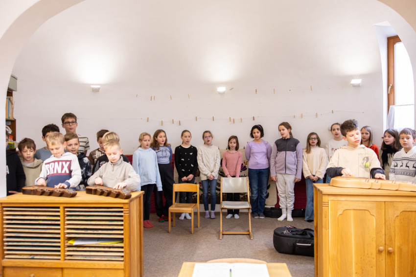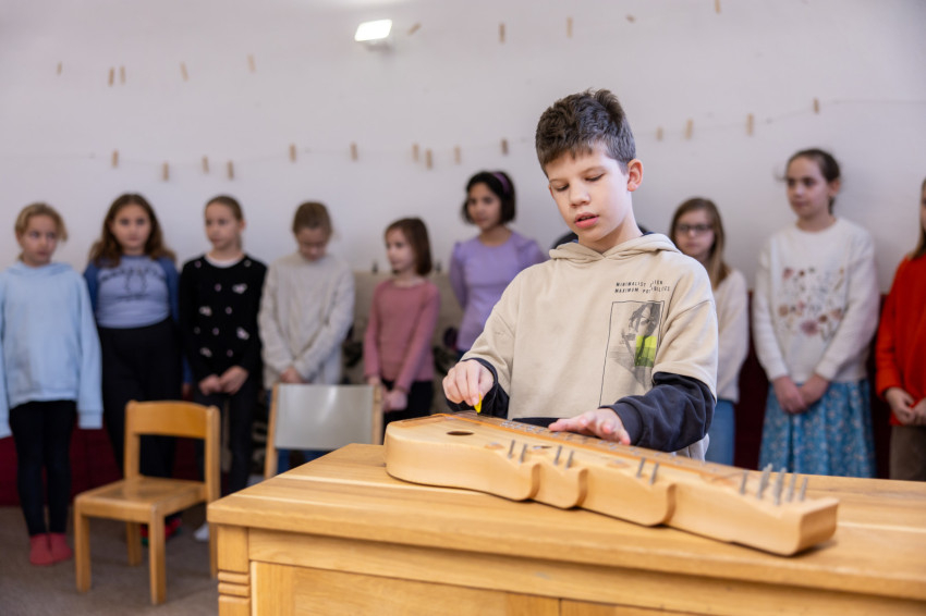 – folytatta az igazgató, majd levetített egy kisfilmet, ahol a gyerekek együtt zenélnek népi hangszereken, és táncolnak rá. „Minden gyerek tanul zenét, minden gyerek alkalmas a zenetanulásra” – tette hozzá.
