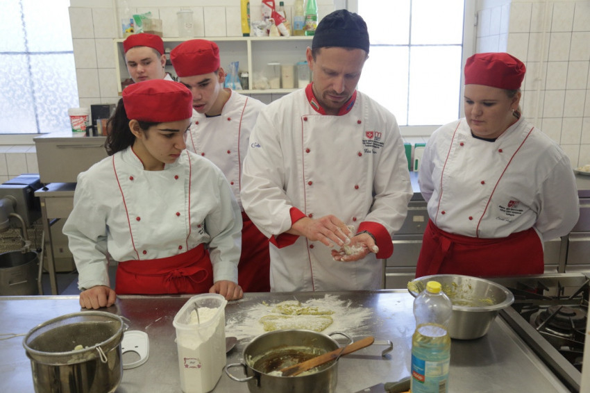 Szakácsok gyakorlati órája a MMSZ Károly Róbert Technikum, Szakképző Iskola és Gimnáziumban