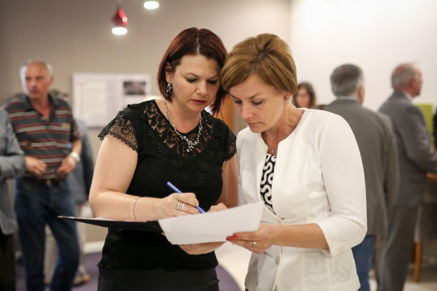 Az épületben már gyülekezett a Cantata kórus, melynek tagjai énekükkel emelték a kiállításmegnyitó fényét; s jelen volt Dankó József alpolgármester is, aki megnyitotta és az érdeklődők figyelmébe ajánlotta a tárlatot. Ő és munkatársa vezetett végig a tablók előtt, melyek bemutatták a település 20. századi fejlődését, amelyet az akkori szorgos és tehetséges vezetők mellett az arra vezető vasútvonalnak és a nagyipari szénbányászatnak is köszönhet. Ekkor tudtam meg, hogy a mai művelődési ház az 1920-as években munkásotthonnak épült, nem valakinek a kastélya volt…