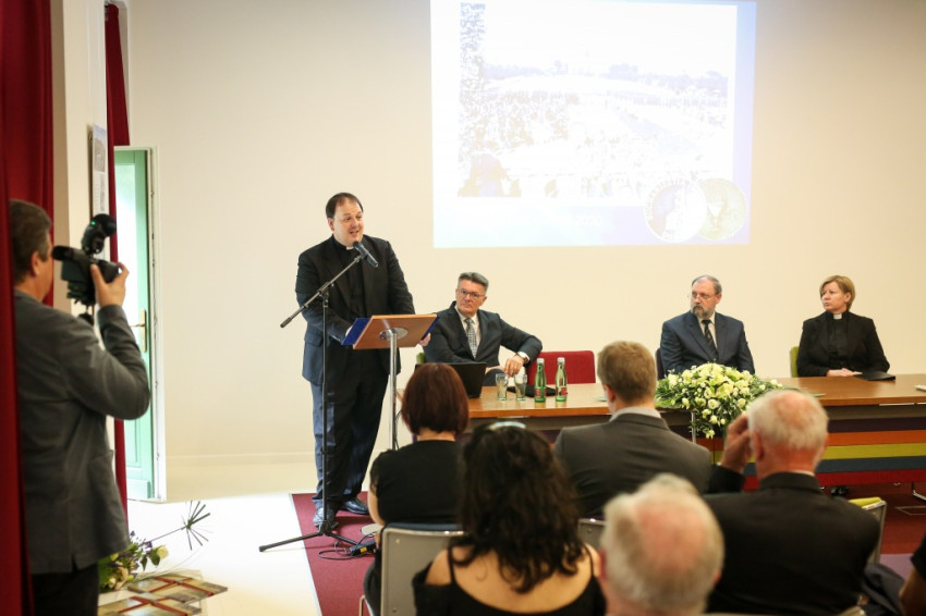 E hagyományok, emlékek alapján érthető, hogy nagy érdeklődés mellett tartották meg idén május 12-én az Eucharisztia 1938–2020 kiállítás megnyitóját és az utána következő konferenciát is, melynek első előadója Török Csaba teológus, egyetemi tanár volt. Előadásában többek közt a kenyér és a bor a Bibliában megtalálható, már az Eucharisztia alapítása előtt is betöltött szerepéről beszélt: emlékeztetett a csodálatos kenyérszaporításra, a kánai menyegzőre, annak hangsúlyozására, hogy a kenyér ajándék, melyet tovább kell adni. Szólt arról is, hogy a Jelenések könyvét olvasva a végső nap elérkezésekor – mely az utolsó fejezete a történelemnek, vagy a történelem utáni időnek az első fejezete – is menyegző lesz, a Bárány lakomája. Mi, katolikusok a szentáldozás előtti szavainkkal erre a lakomára utalunk. A teológus hangsúlyozta: a 2020-as Nemzetközi Eucharisztikus Kongresszus a kenyér és a bor jeléhez vezet vissza bennünket, hiszen ez az ünnepi időszak arra ad lehetőséget, hogy végiggondoljuk, újra megtaláljuk identitásunkat. Felismerjük, vagy megerősödjünk abban, hogy mit üzen számunkra Krisztus eucharisztikus kenyere és bora.