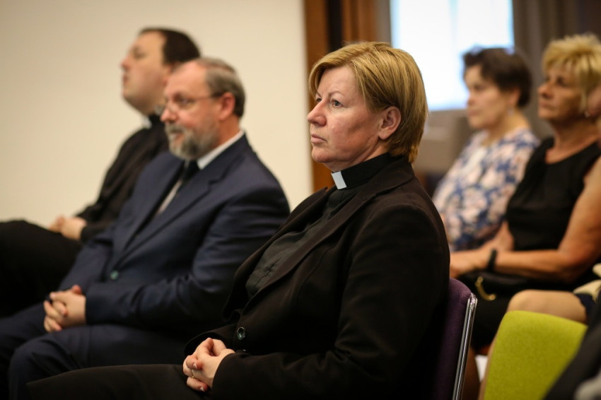 Klimentné Ferenczy Andrea evangélikus lelkész előadásának címe az Egy asztal vendégei vagyunk – Eucharisztia a Szentírás alapján volt. A lelkésznő arról szólt, hogy Jézus új helyzetet, új közösséget alapított. Új értelmet adott a kenyérnek és a bornak, hiszen az úrvacsorai közösség az ember javát szolgálja. Mint mondta, más felekezeteknél az Oltáriszentséghez járulók sorban állnak, míg az evangélikusok az oltár körül térdepelve veszik azt magukhoz. Ezzel is érzékeltetve, hogy közösséget teremtő vacsora részesei. Véleménye szerint a hívek itt átélhetik, hogy csupán az anyag választja el őket Jézustól, a közösséget teremtő vendéglátótól.