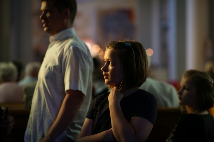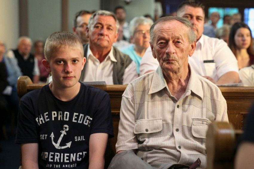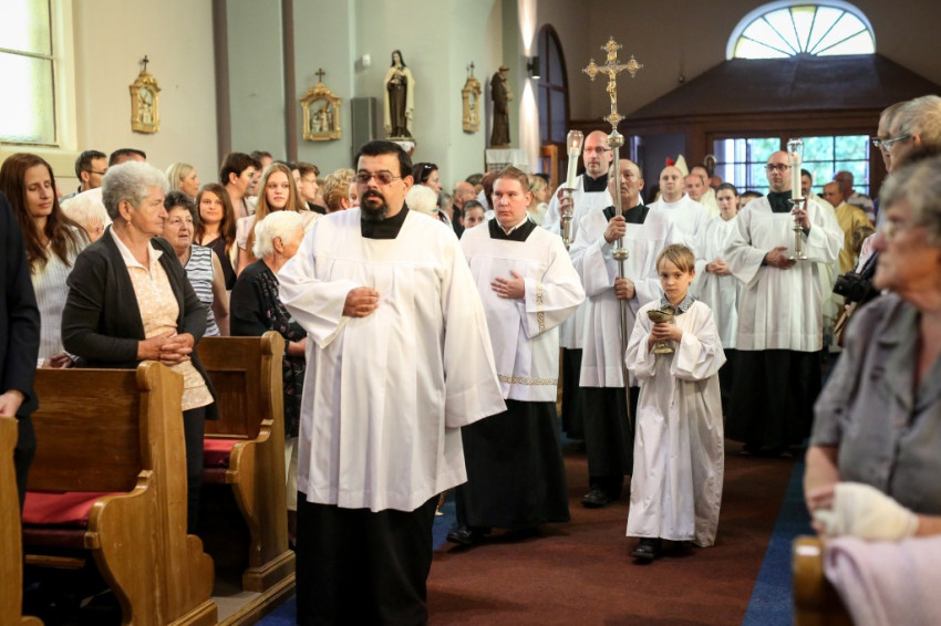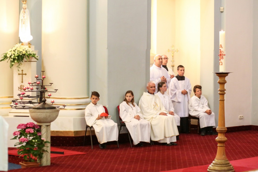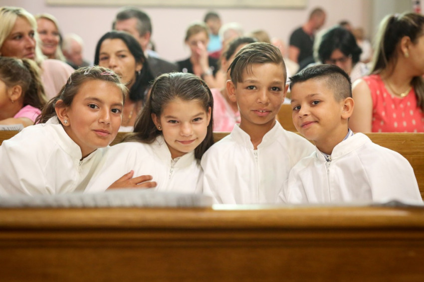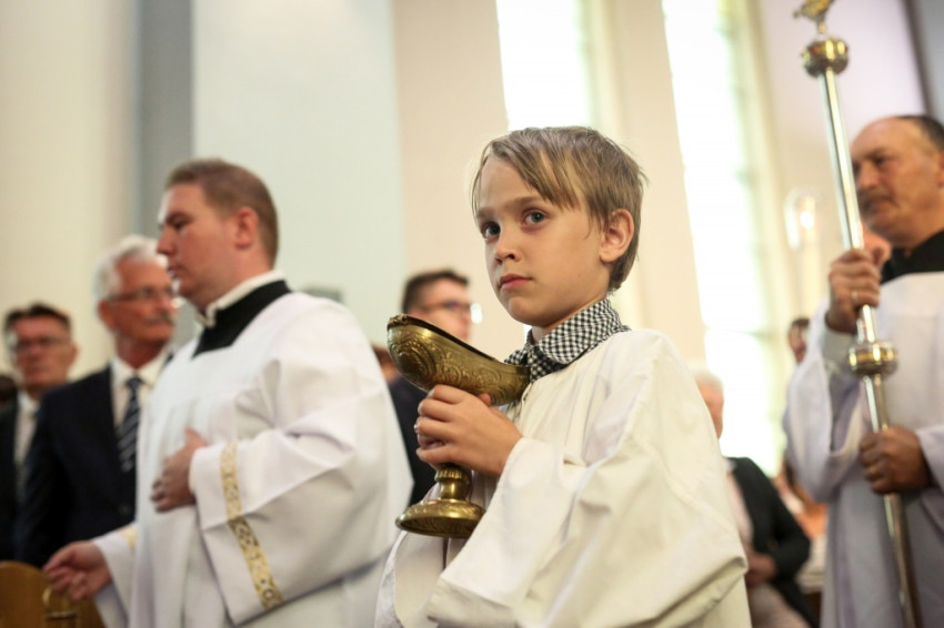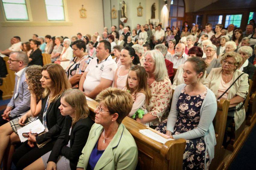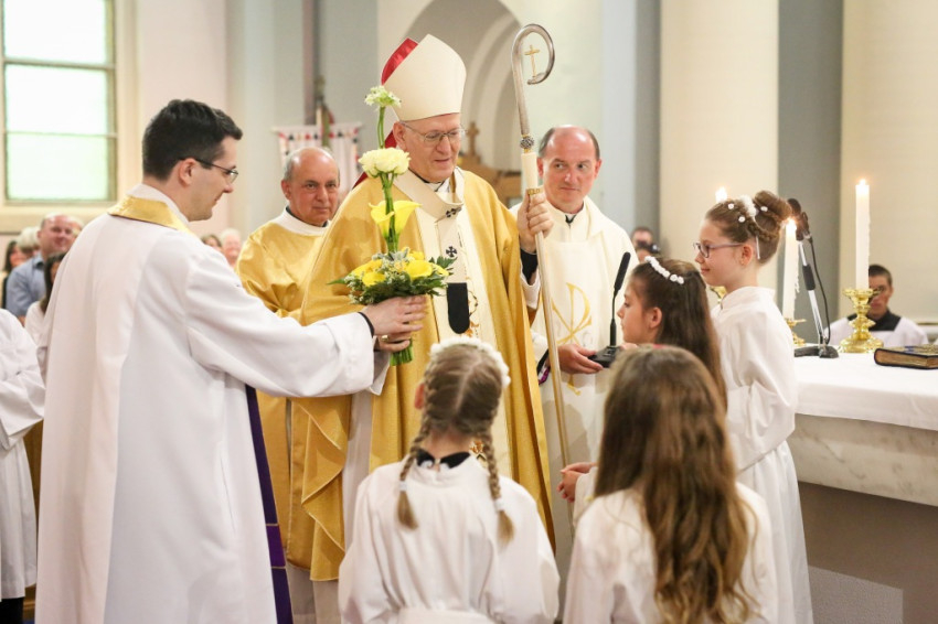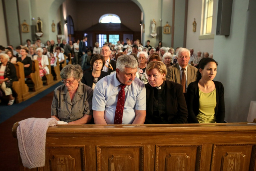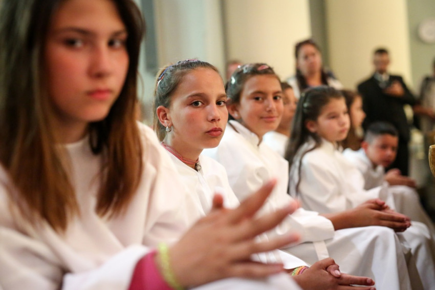 A konferencia befejeztével a jelenlévők nagy többsége átvonult a közeli Szent Borbála-templomba, ahol Erdő Péter bíboros, prímás főcelebrálásával mutattak be szentmisét. A környező egyházközségek fiataljai közül huszonhatan először járulhattak szentáldozáshoz. Szerencsés Zsolt tiszteletbeli kanonok, a templom plébánosa köszöntötte a főpásztort. Ezt követően Erdő Péter bíboros szólt az elsőáldozó fiatalokhoz, üdvözölte a testvéregyházak képviselőit és a városi és megyei vezetőket.