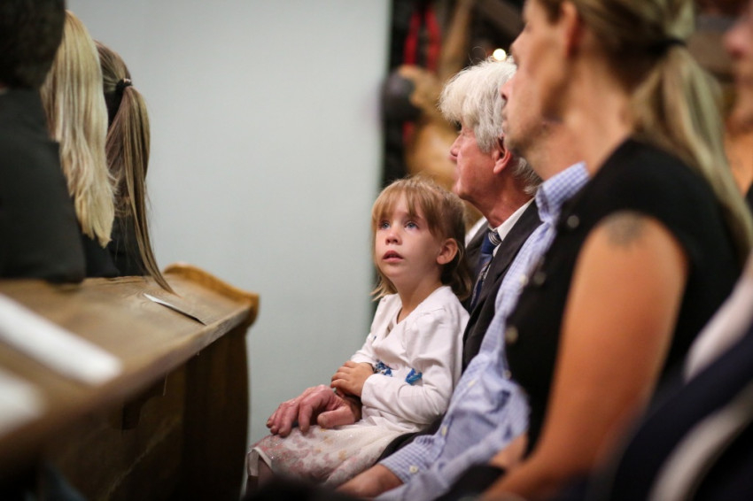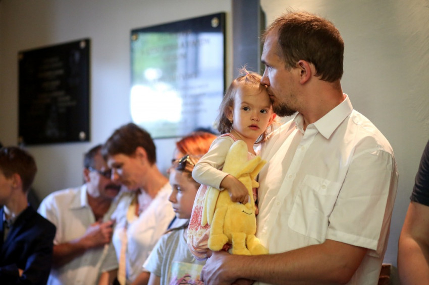 A záróáldást követően az elsőáldozó gyerekek köszöntötték Erdő Péter bíborost és Szerencsés Zsolt plébánost. A főpásztor, a papság és az asszisztencia ezután kivonult a templom előtt álló, a bányászok helytállását és a tárnák mélyén meghaltak emlékét őrző kereszthez, hogy a naplementében már látszó új díszkivilágítást felavassák.