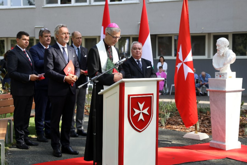 A szoboravató ünnepségen Erőss Loránd, a Magyar Máltai Lovagok Szövetségének ispotályosa idézte fel az intézmény történetét, megemlítve, hogy az első páciensek a rehabilitáció során még mezőgazdasági munkát végeztek. Az intézményt fenntartó karitatív szervezetről kiemelte, hogy számos idős pszichiátriai beteget vett át, akikről a családjuk már nem tud megfelelően gondoskodni.