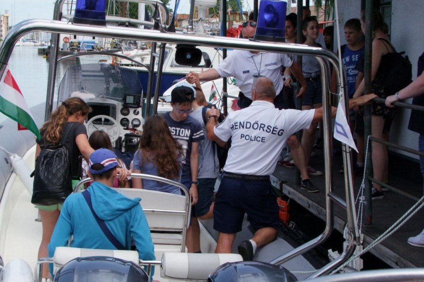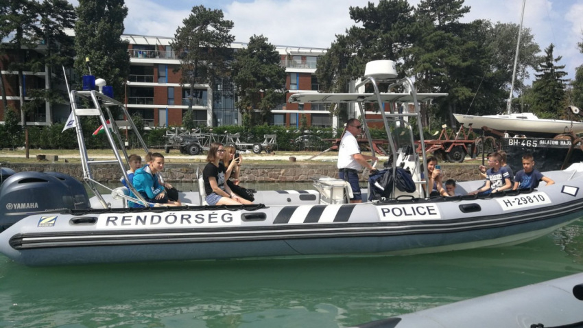 Ezenfelül a Balatoni Vízrendészeti Rendőrkapitányság szakembereinek közreműködésével a diákok rendőrhajóval szelhették át a Balatont Siófok és Tihany között.