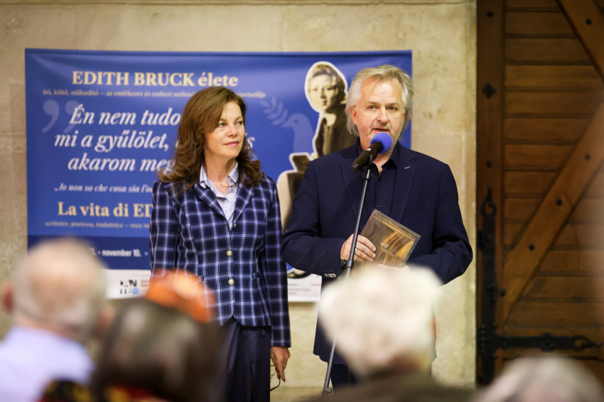 Megosztotta a hallgatókkal, hogy az olasz nyelv hetét ünnepeljük, ez adta az alkalmat a kiállításnak, amely nemcsak egy életmű bemutatása, hanem tanúságtétel az emberi méltóságról, az emlékezés fontosságáról és a nyelv erejéről. Edith Bruck a nyelvvel gyógyít – hangsúlyozta.