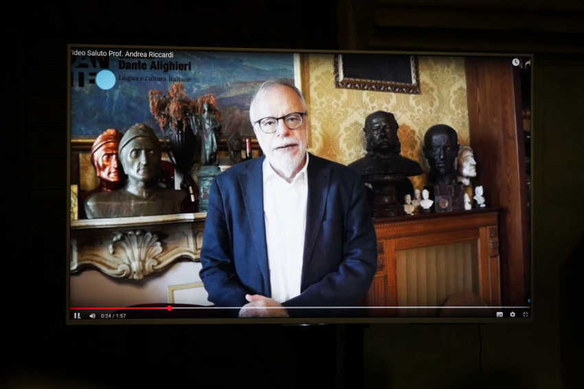 Andrea Riccardi videoüzenetében kifejezte örömét, amiért üdvözölheti a kiállítás látogatóit és a magyar olvasókat a könyv bemutatóján.