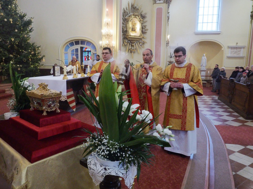 A szentmisén koncelebrált Varga István, a veszprémi hittudományi főiskola rektora. Tornavölgyi Krisztián plébános a szentmise kezdetén köszöntötte a főpásztort és a híveket. Rámutatott: különösen fontos az idei búcsú, hiszen előző este arra is emlékeztek, hogy Szent Margit éppen 750 évvel ezelőtt, 1270. január 18-án költözött az örökkévalóságba.
