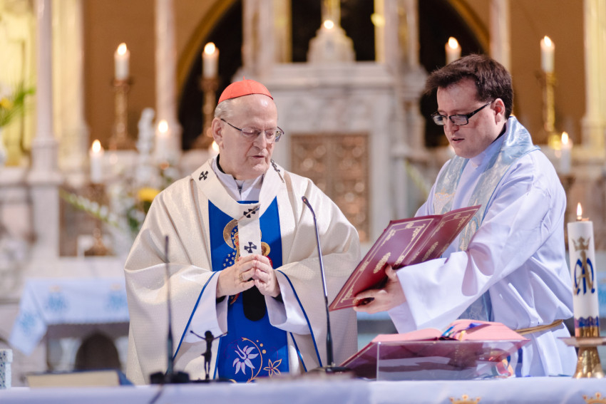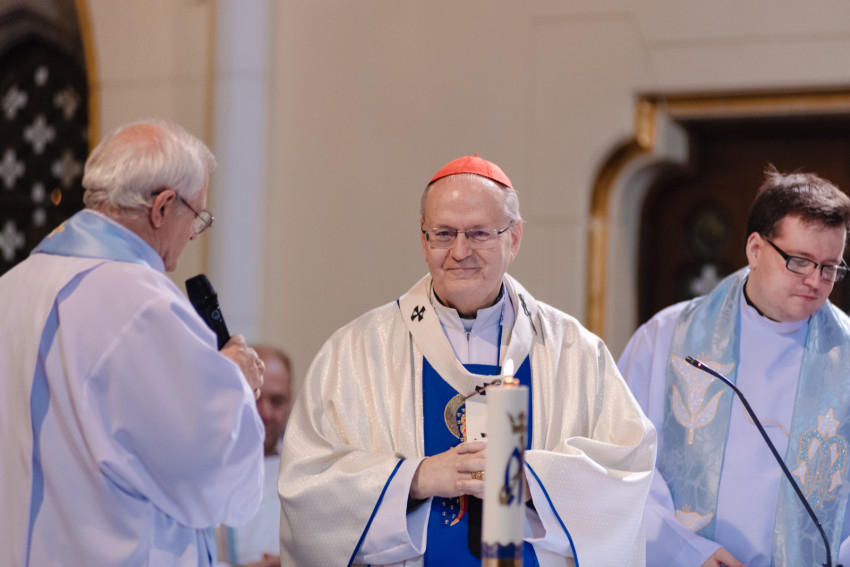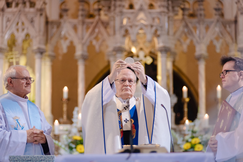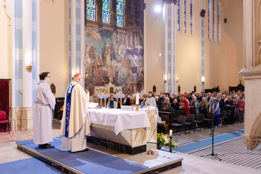 A záró áldás előtt Erdő Péter bíboros, prímás megáldotta a hívek rózsafüzéreit, kegytárgyait.