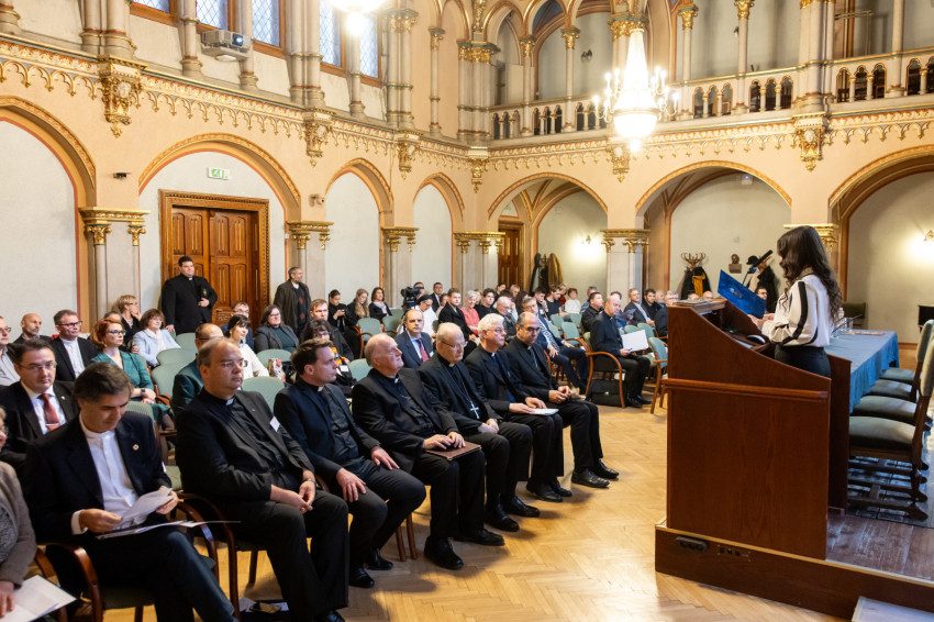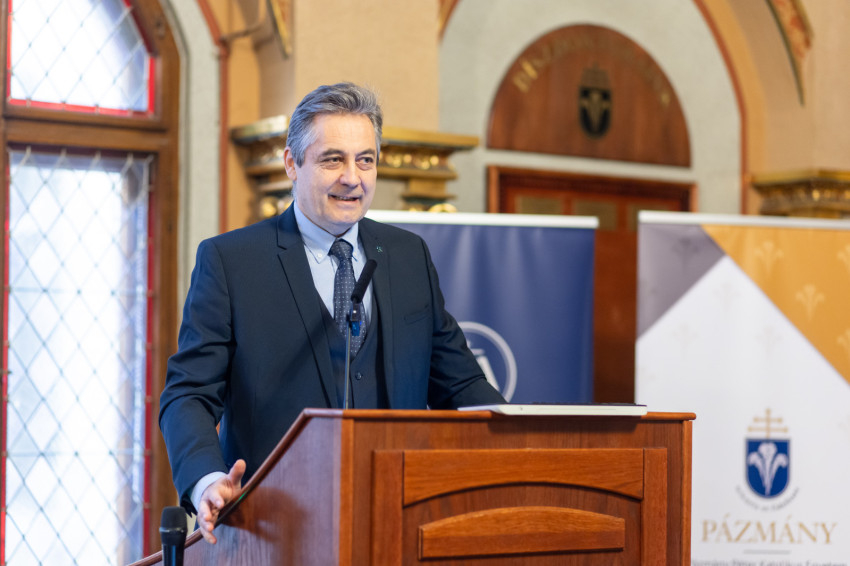 „Ma különféle reform és haladó pedagógiával találkozhatunk, melyek láthatóan nem termik meg a nevelés igazi gyümölcseit. Mint ahogyan azt Szentmártoni Mihály SJ pszichológus megírta a hetvenes években, a nyugati társadalom kétharmada érzelmileg kiegyensúlyozatlan, erkölcsileg kiskorú és vallásilag primitív. A helyzet azóta romlott” – kezdte köszöntőjét Kuminetz Géza, a PPKE rektora.