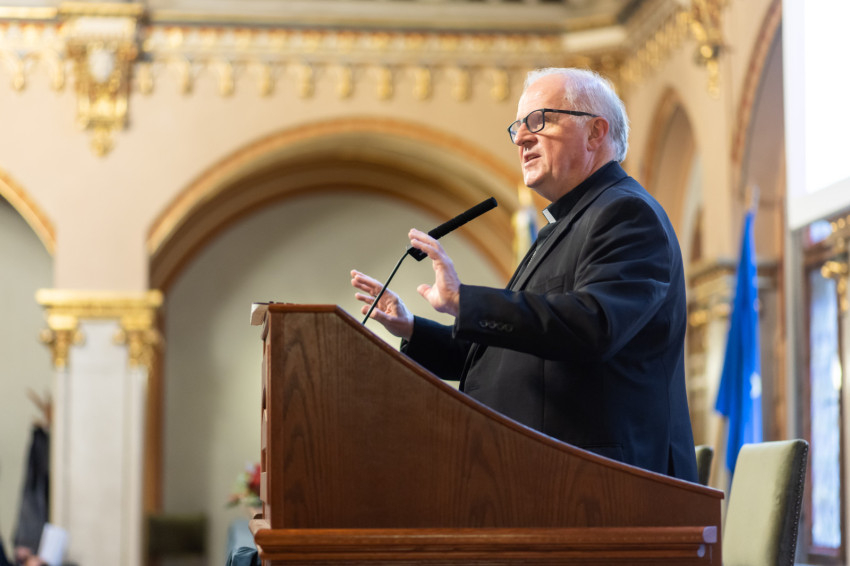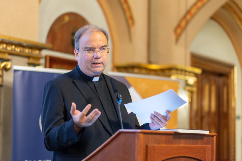 Székely János szombathelyi megyéspüspök, az MKPK elnöke, a PPKE nagykancellárja köszöntőjében a Szentírás egy kevéssé ismert történetét idézte fel. Sámson édesanyjával közli egy angyal, hogy fia hatalmas erőt kap Istentől. Mégpedig azért, hogy ennek segítségével megszabadítsa a népét. Az angyal a szabályokat is közli vele, köztük azt, hogy Sámson nem vághatja le a haját. Később az édesanya mindent elmond a férjének és a felnövekedett Sámsonnak is, ám a lényeget kifelejti. Sámson az erejét ostobaságokra fecsérli, soha nem tudja meg, hogy erejével mit kellett volna kezdenie.