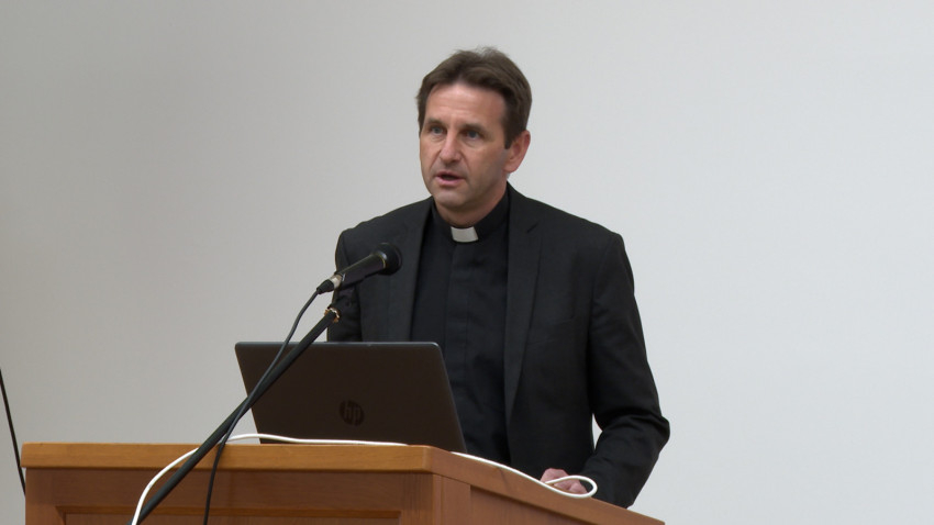Krisztus szeretete lehajlott hozzánk, hogy bele tudjunk kapaszkodni a keresztbe. Az Egyház, a lelkipásztor, Krisztus szeretetének közvetítője hatalmas erőforrás lehet a diákok, a pedagógusok és a családok számára. Beszélt a világban és a hitben megmutatkozó reményről. Fontos, hogy megjelenjen az iskola éves munkatervében, a tanév menetében, a munkaközösségben, nemcsak a hittan vagy a történelem órákon, hanem akár zarándoklatok szervezésében, lelkinapok témájában. Kérdésként fogalmazta meg, hogy vajon készen állnak-e a papok, hitoktatók arra, hogy válaszokat adjanak azoknak, akik a reménytelenségben fordulnak hozzájuk.