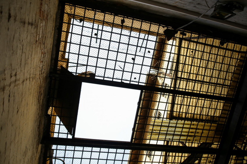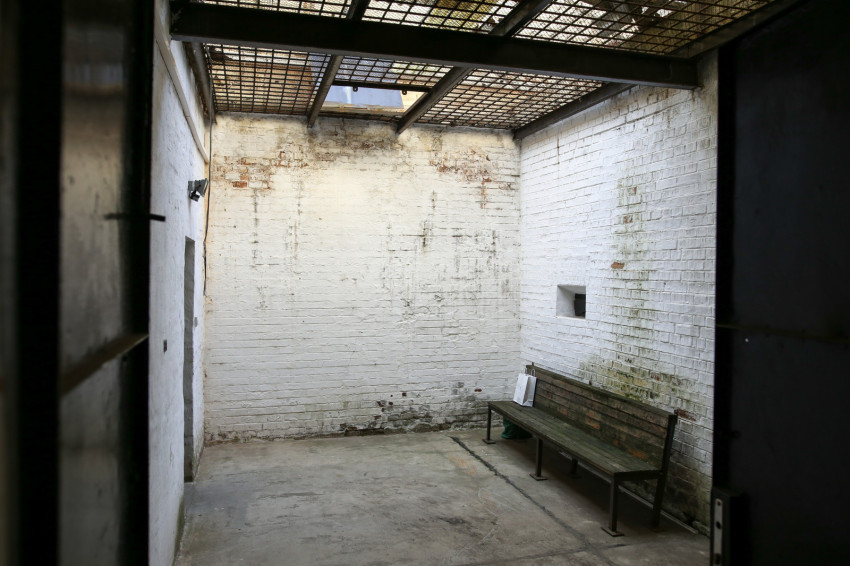 A börtönbejárás utolsó állomása a volt fogház belső udvara, itt zajlott a rabok napi sétája. Ismét egy idézet az Emlékirataimból – szomorú sorok, költői képek a hiányról, a magánzárka világtalan világáról... „A bíboros a sétaudvaron legalább láthatta az égboltot” – fűzi hozzá Kovács Gergely. Hatvannyolc lépés, tizenkét kör, ennyi volt a séta, ennyi jutott. Mindszenty József számára azonban az imádság alkalma volt.