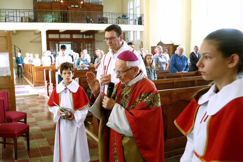 Kilencvenéves lett a móravárosi Szent Kereszt-templom. Ahogyan az az egyházközségben szokás, különleges módon ünneplik meg a kerek évfordulót, ennek első állomásaként ünnepi szentmisére került sor szeptember 17-én vasárnap, amikor Gyulay Endre nyugalmazott püspök megáldotta a templom alapító okiratát. A dokumentumot néhány évvel ezelőtt találta meg Fazakas Attila plébános, aki eleinte nem is tudta, hogy mit tart a kezében. Csak akkor vált teljesen nyilvánvalóvá számára, amikor a Móra Ferenc Múzeum egyik papírrestaurátora felújította az okiratot, amelyen Glattfelder Gyula püspök (1911-től csanádi püspök, 1942-től haláláig kinevezett kalocsai érsek – a szerk.) aláírása is látható.