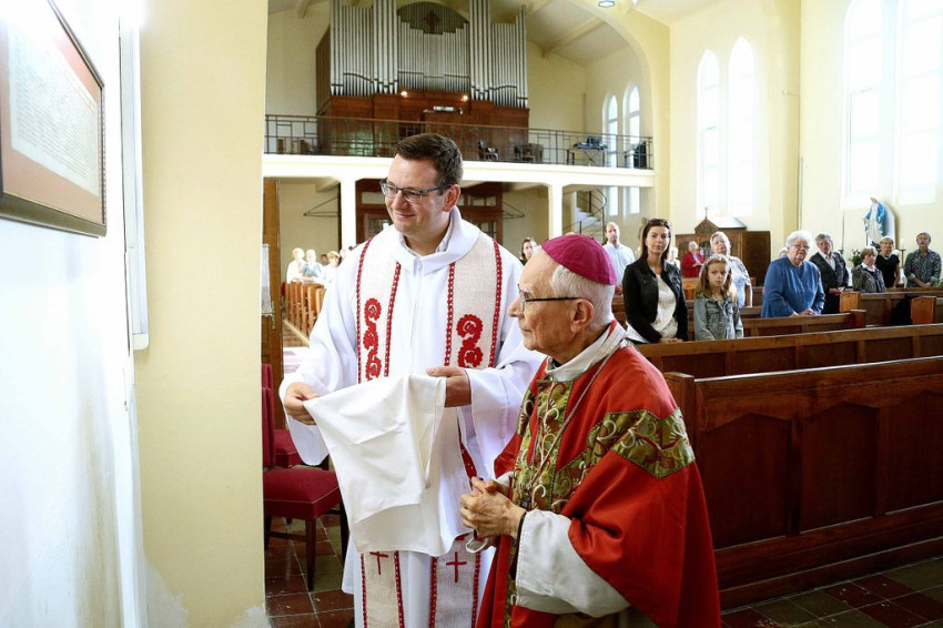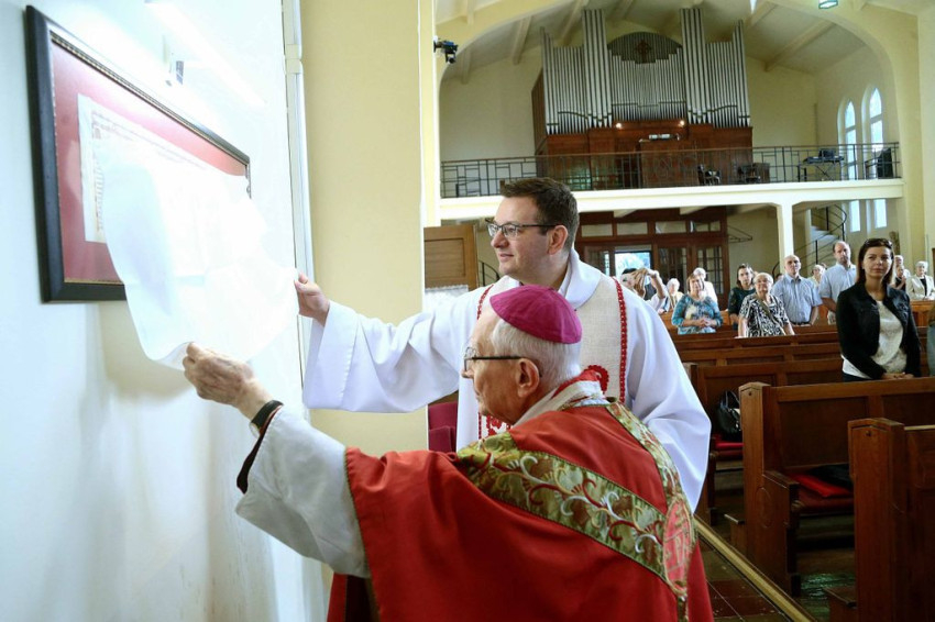 Fazakas Attila plébános szétázva találta meg a lelkészség alapító okiratát, melyet felújítottak és kihelyeztek a templomban