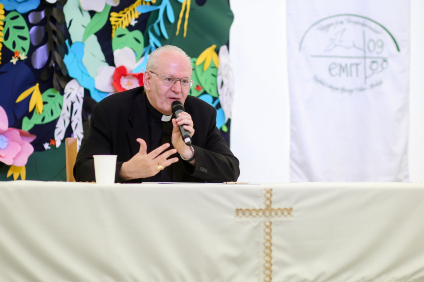 A főpásztor az előadásában a NEK-re való készülés három évének központi témáiból indult ki, melyek az EMIT három napjának tematikáját is meghatározták. Az első téma az egyén, a második a közösség viszonya az Eucharisztiához, a harmadik pedig a misszióval, a világ elé való kilépéssel foglalkozik.