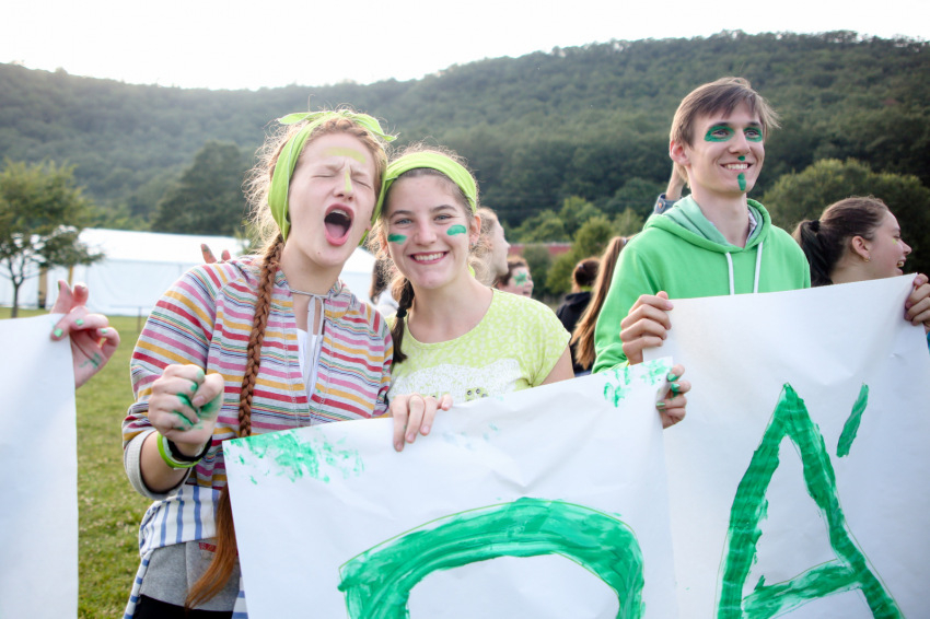 Az EMIT középső napjának vagyunk vendégei a Csattogó-völgyben. A helyszínt a Jóisten is közösségépítő térnek teremtette, és az ember hozzájárulásával ideális táborterület lett. Óriási zöld mező a völgyben, körülvéve erdővel. Középen hatalmas, szépen gondozott füves terület, ahol most a tábor nagy fehér sátra is áll. Mellette foci- és kosárpálya, körülötte apró faházak, az étkezéseknek helyet adó faépület. Érkezésünkkor kifogjuk július egyik leghidegebb, esős napját, így csak távolról nézzük meg a tábor sütögetőteraszát, a kalandparkot és a medencét.