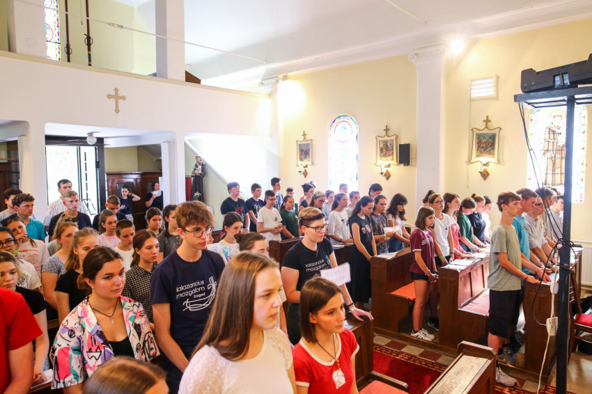 Kánikulában kezdődött el a Szeged-Csanádi Egyházmegye ifjúsági tábora. Domaszék-Zöldfás kis templomában szinte szaunában érezzük magunkat a nyitószentmisén. A padok megteltek, a tábor, mely a 2003. óta hozzátartozik az egyházmegye életéhez, és melyet immár a 19. alkalommal rendez meg az Ifjúságpasztorációs Iroda, teltházas.