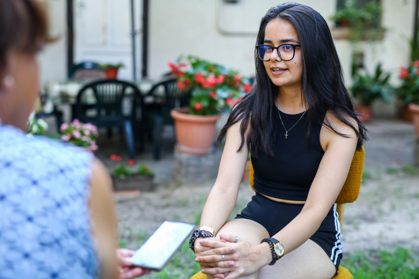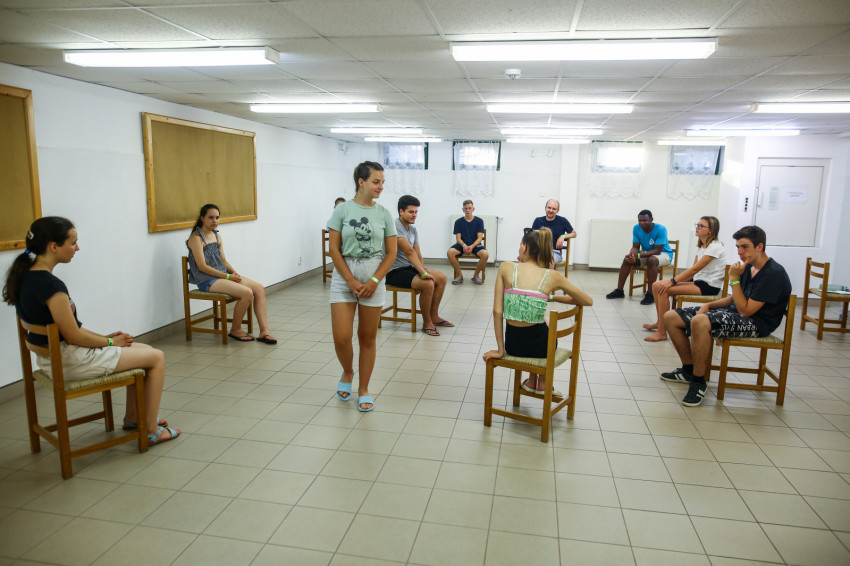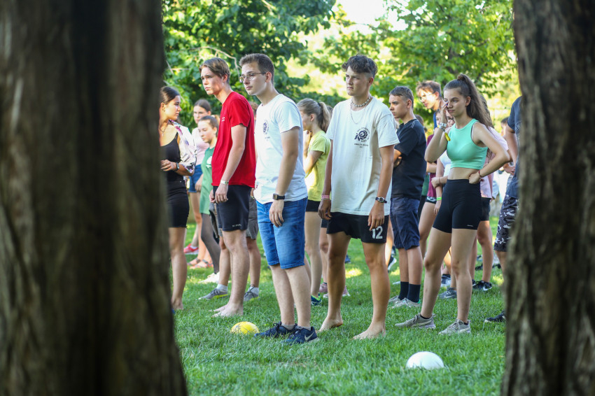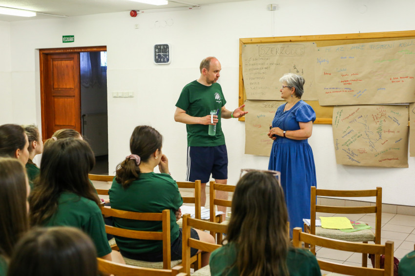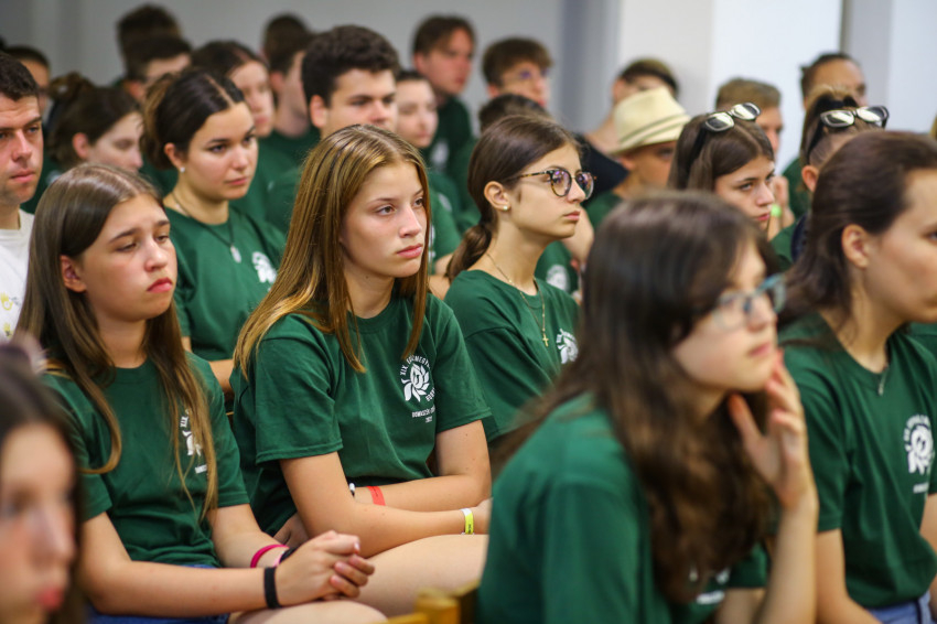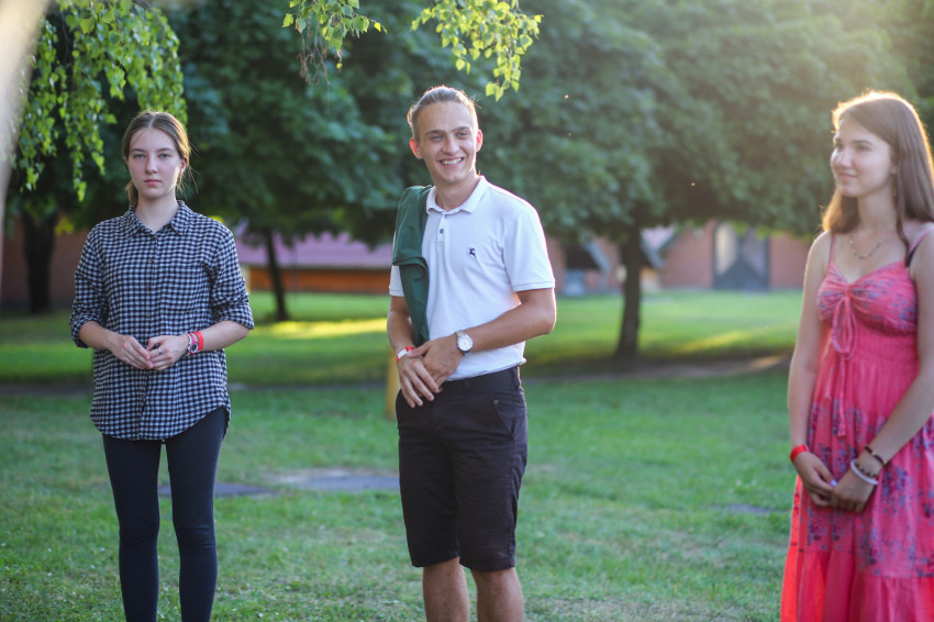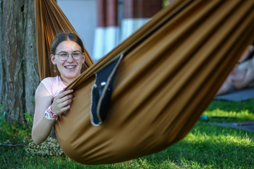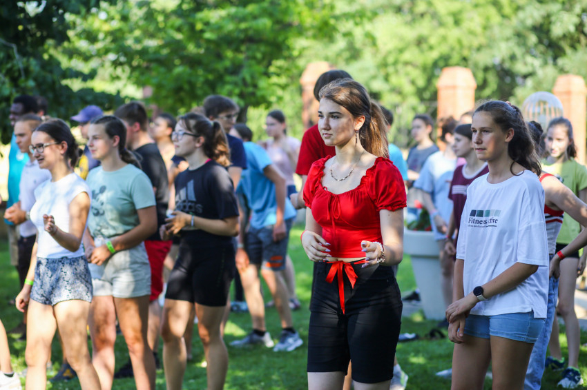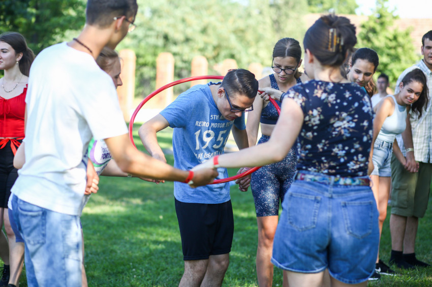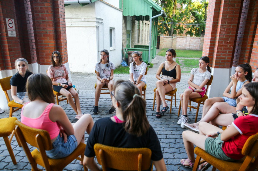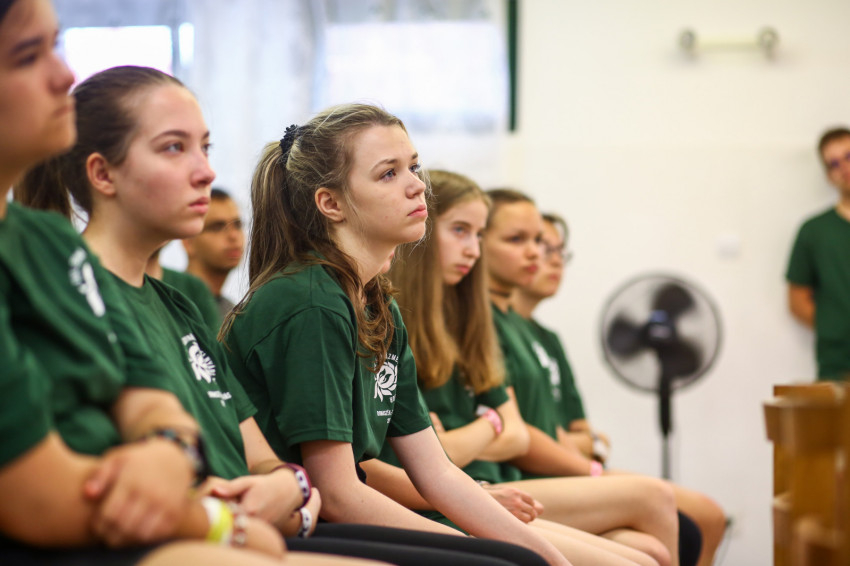 A tábor első napján vagyunk jelen. Az arcokon félénkség bujkál, hiszen ez egy új a helyzet, ahol még idegenek egymásnak a társak, de érezhető már az a légkör, melyben könnyű lesz feloldódni. Ezt fogalmazza meg az iskolanővérek szegedi gimnáziumában, a Karolinában érettségizett Lajkó Bianka is.